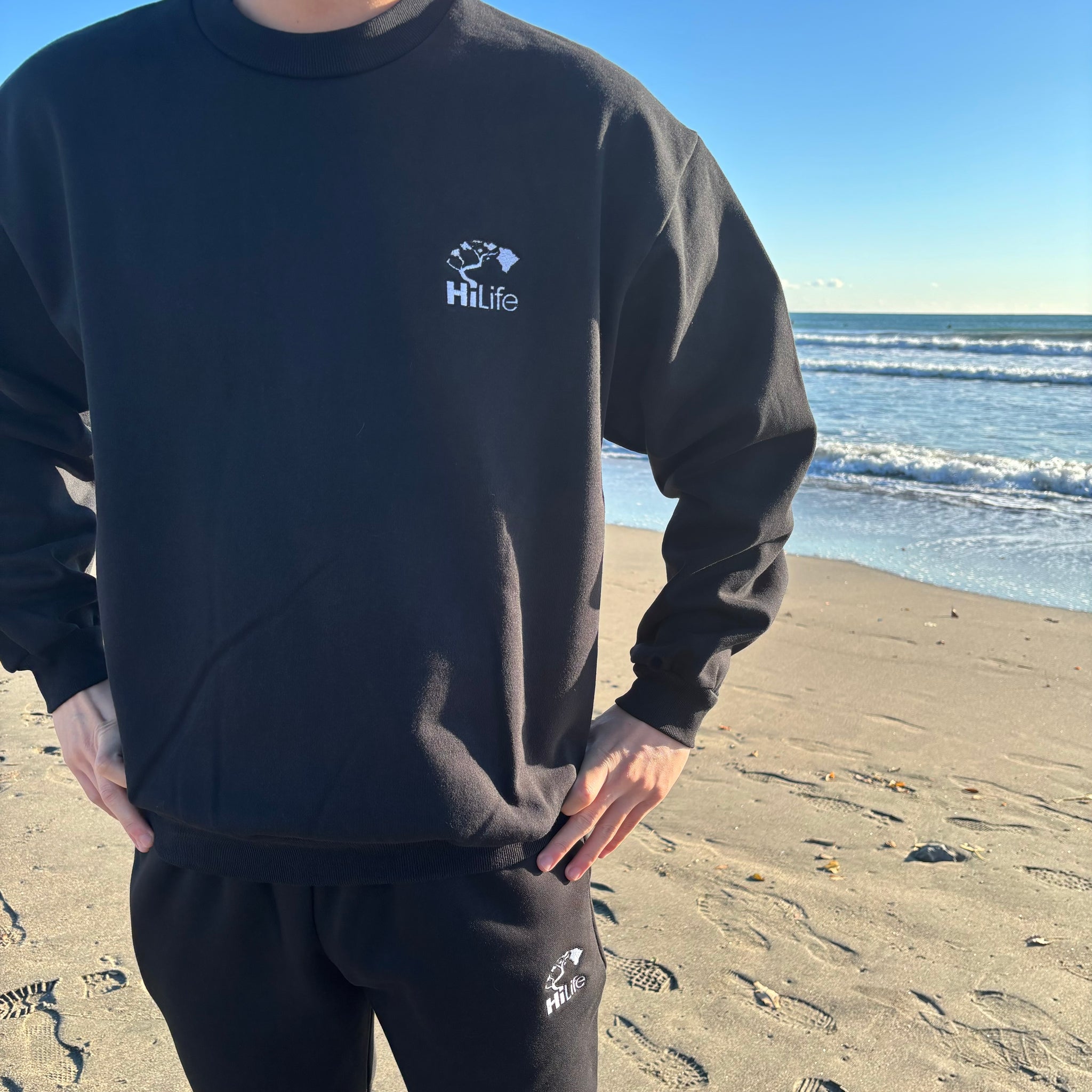 肉厚で存在感のある“Magnum Weight”ボディに、HiLifeのビッグロゴ刺繍を施したクルーネックスウェット